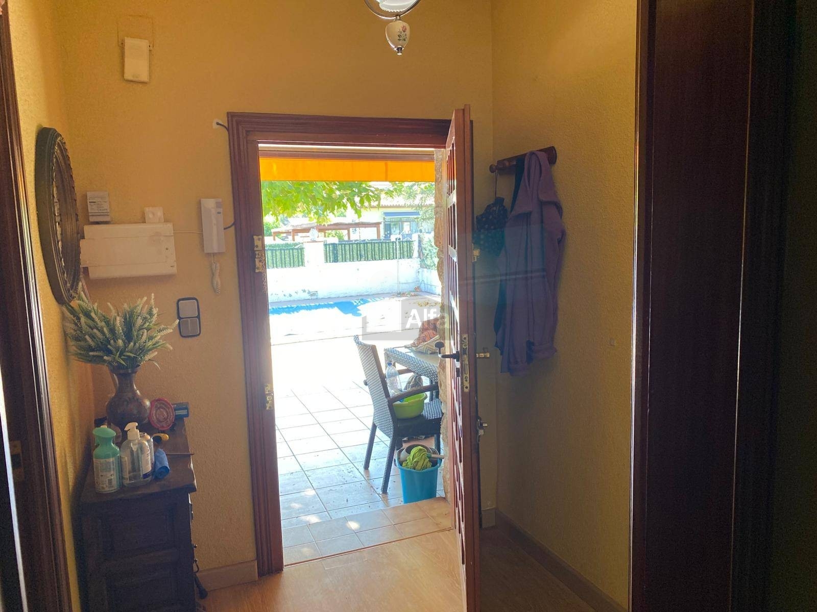 ALFA KEYWEST Madrid-Oeste vende SIN HONORARIOS al COMPRADOR. CHALET independiente en planta, (100% accesible) con 156 m2 construidos, en parcela de 489 m2 con barbacoa y piscina de 43 m2, con 3 dormitorios y 2 baños en el casco urbano de Aldea del Fresno (Urb. Alamillos):
